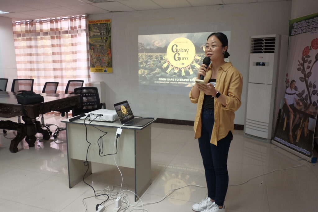 To wrap up the session, everyone gathered in a big circle for a short sharing session. Most of the teachers expressed similar sentiments, saying that they were drawn to teaching because kids are close to their heart, and that the profession is something that they are genuinely passionate about. Majority of them also shared that attending the workshop is a way for them to gain a deeper understanding of SEL, and that whatever they learned in the session, they will share it to their community. Gen Bucao left the teachers with a reminder saying that if they ever feel like they are alone and are confronted with challenges, they should look back and reflect on the learnings from the workshop, as a source of guidance and support.